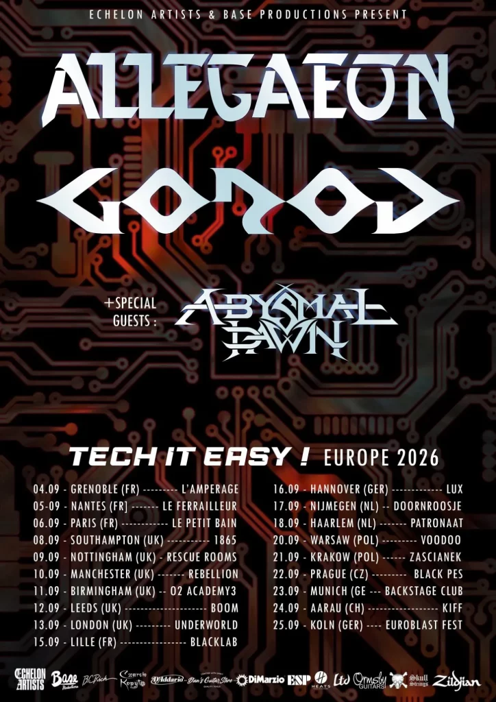 Allegaeon and Gorod have announced a co-headlining tour for EU/UK. Support will come from Abysmal Dawn.