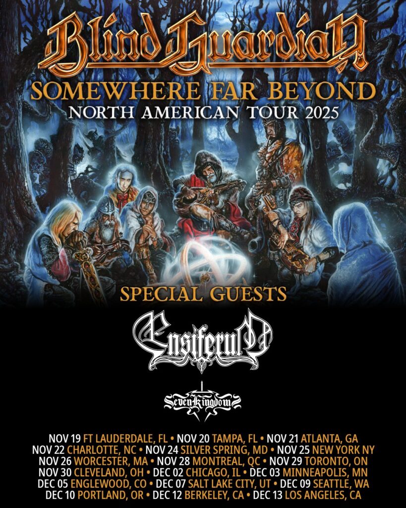 Germany’s Blind Guardian have announced a North American tour late Fall. Support will come from Ensiferum and Seven Kingdoms.