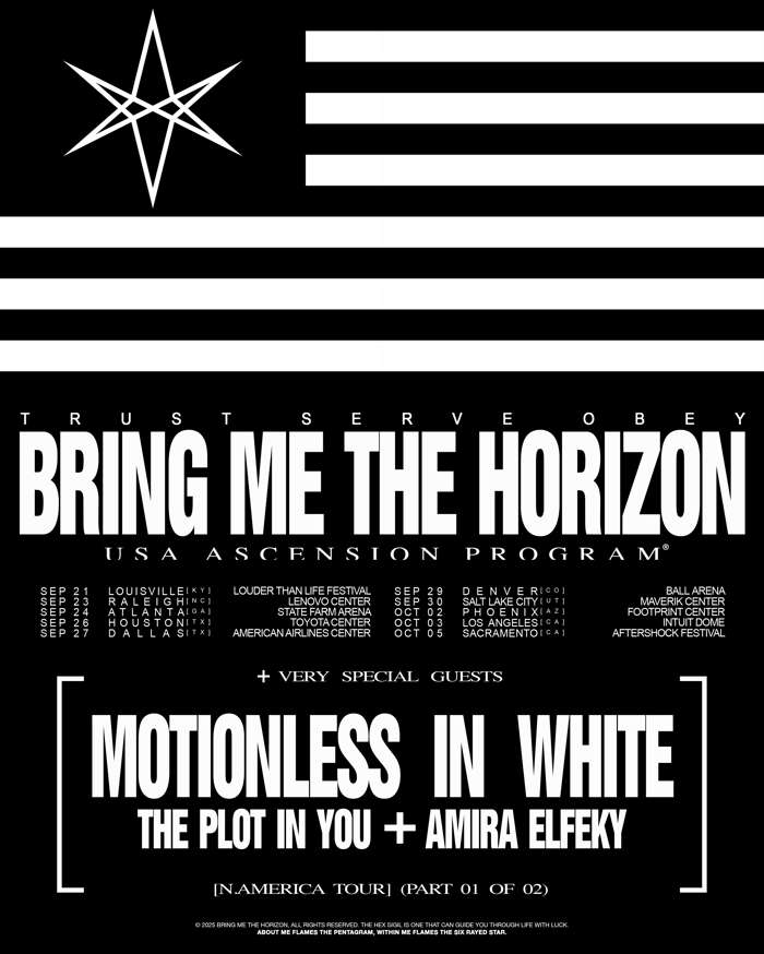 Bring Me The Horizon have announced a headlining U.S. tour for the Fall. Support will come from Motionless In White, The Plot In You, and Amira Elfeky.