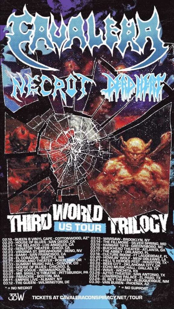 Cavalera (Max and Igor Cavalera ex Sepultura) have announced an early 2025 US tour dubbed “Third World Trilogy”. Support on the tour will come from Necrot and Dead Heat.