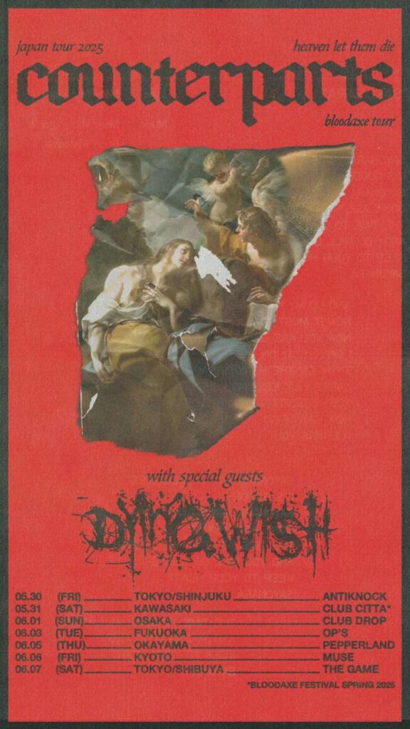 Counterparts have announced a tour of Japan. Support will come from Dying Wish.
