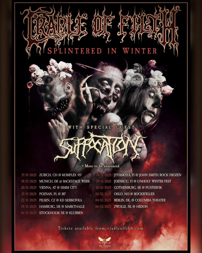 Cradle Of Filth have announced a European tour for late Fall. Support will come from Suffocation.