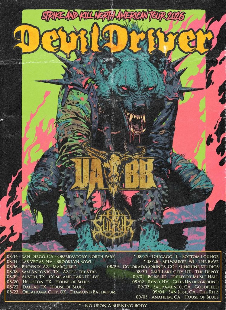 Devildriver have announced a US tour for the Summer. Support will come from Upon a Burning Body and Ov Sulfur.