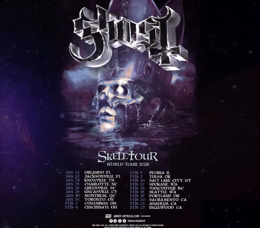 Ghost have announced a North American tour for early 2026.