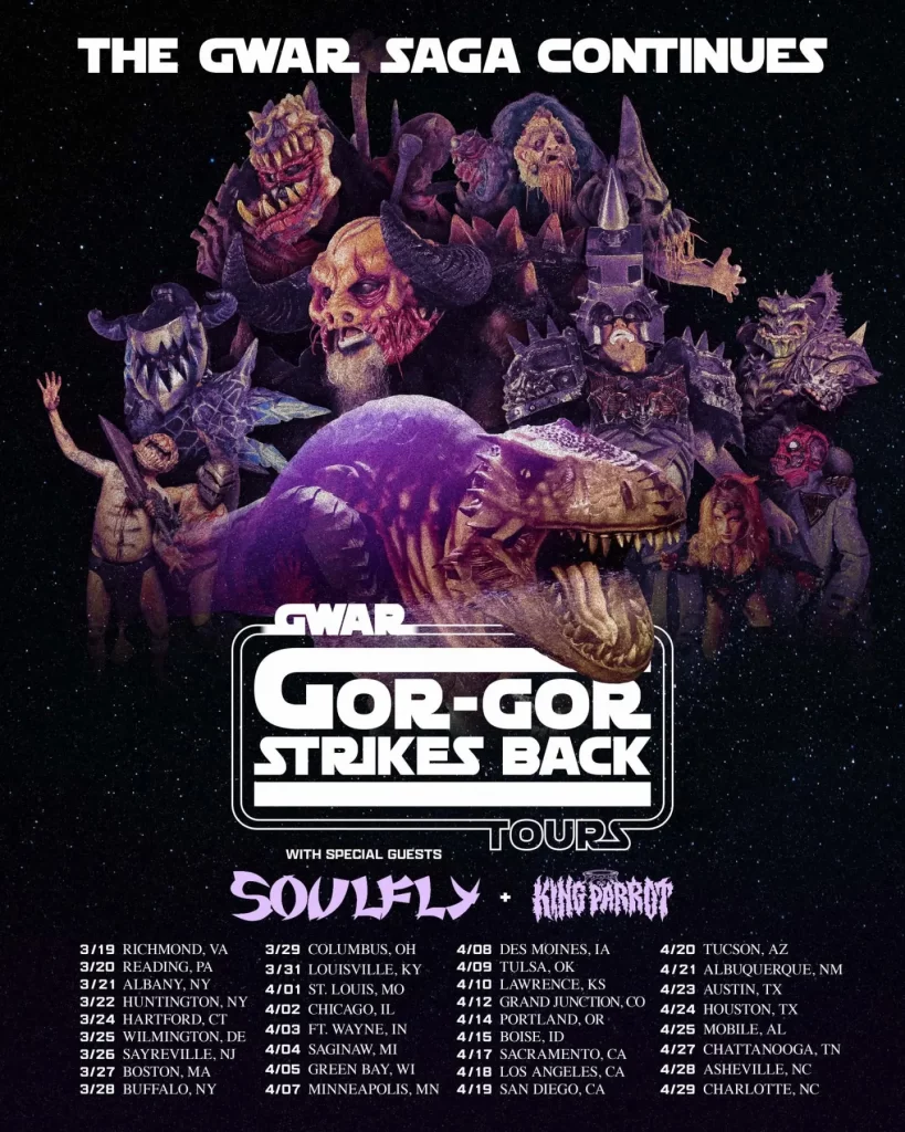 Gwar have announced a Spring US tour called “The Gor Gor Strikes Back Tour”. Support will come from Soulfly and King Parrot.