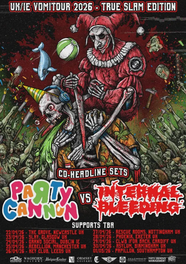 Internal Bleeding and Party Cannon have announced a UK/Ireland tour for Spring 2026.