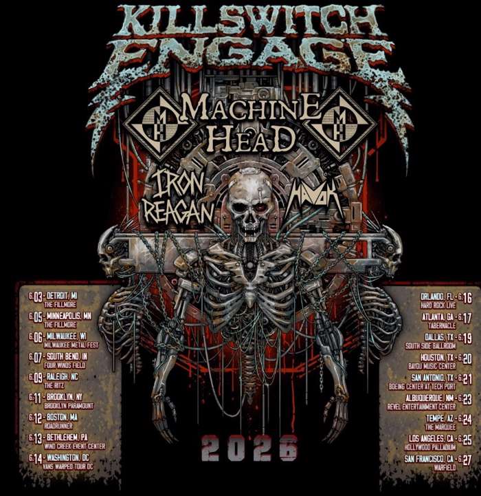Killswitch Engage have announced a US tour for June. Support will come from Machine Head, Iron Reagan, and Havok.