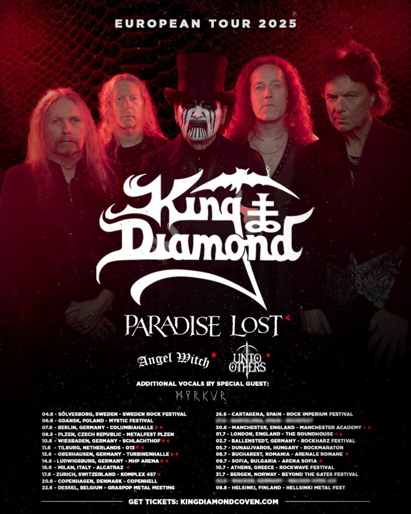 King Diamond will tour Europe in Spring/Summer 2025. Support on select dates will come from Paradise Lost, Angel Witch and Unto Others.