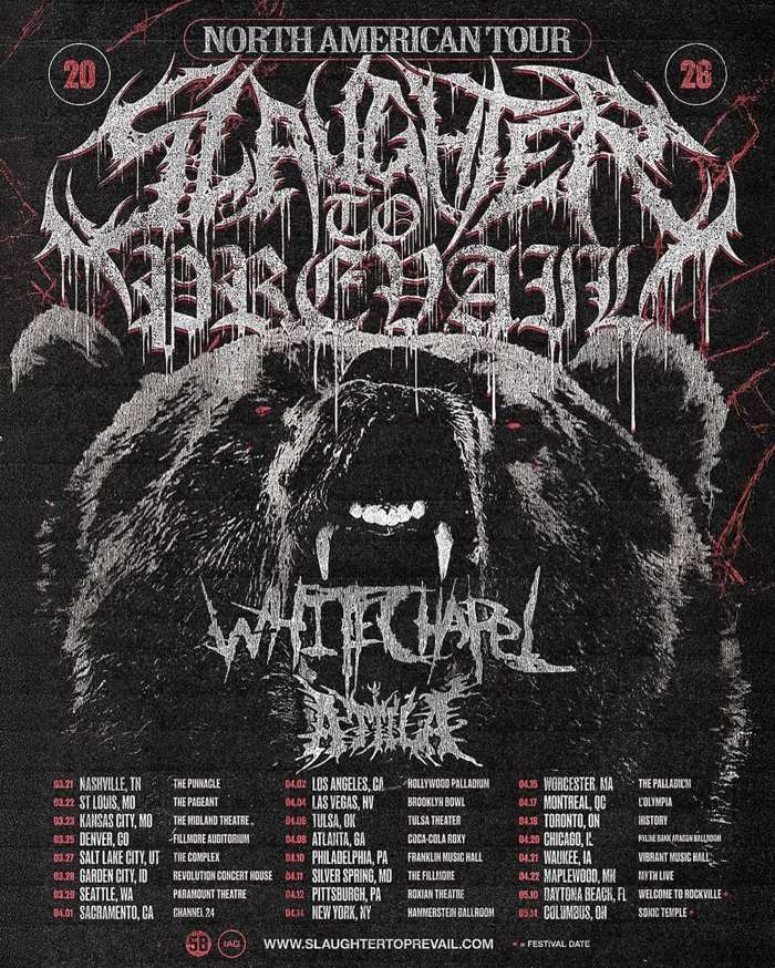 Slaughter To Prevail have announced a North American tour for early 2026. Support will come from Whitechapel and Attila.