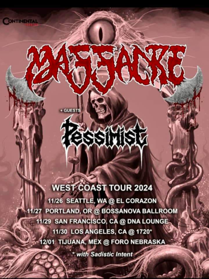 Veteran Florida death metal act Massacre with perform a string of West Coasts dates (including 1 in Mexico) late in November. Support will come from Pessimist and the Los Angeles show will have Sadistic Intent.