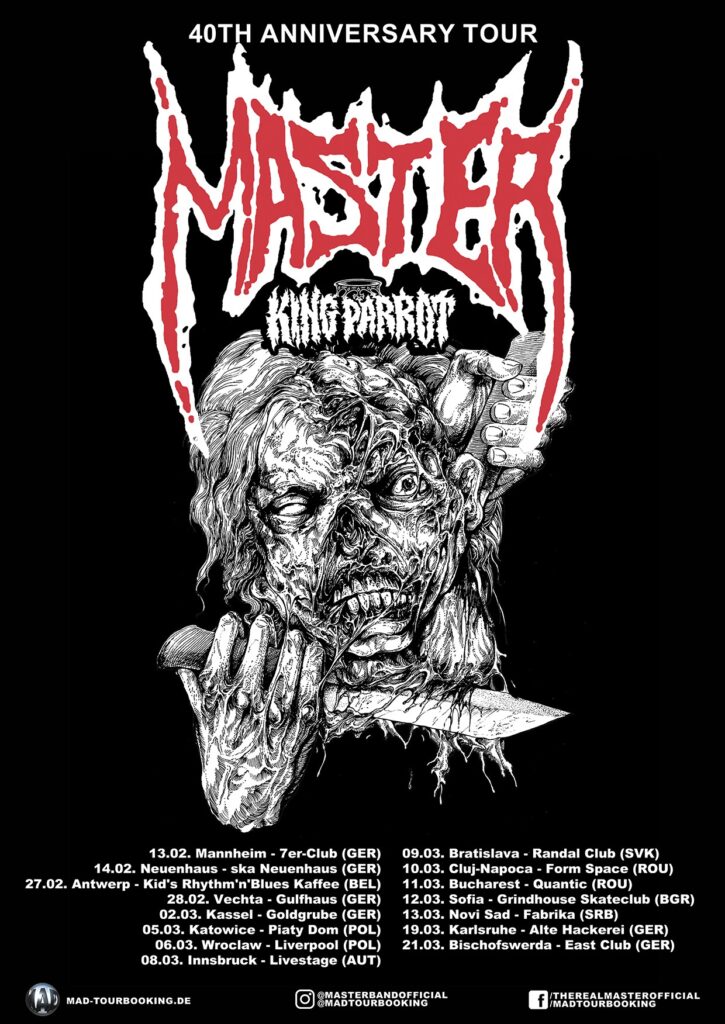 Master have announced their 40th Anniversary tour of Europe. Support will come from King Parrot.