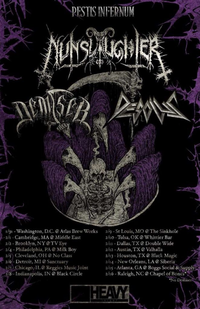 Nunslaughter and Demiser will tour the US in early 2025. The tour will be called the :Pestis Infernum Tour”. Support will come from Desolus.