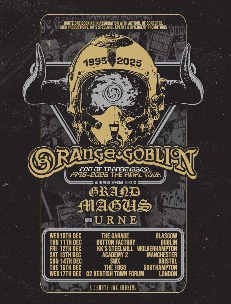 UK’s Orange Goblin will close out their 30 year run with 7 dates in their home country. Support will come from Grand Magus and Urne.