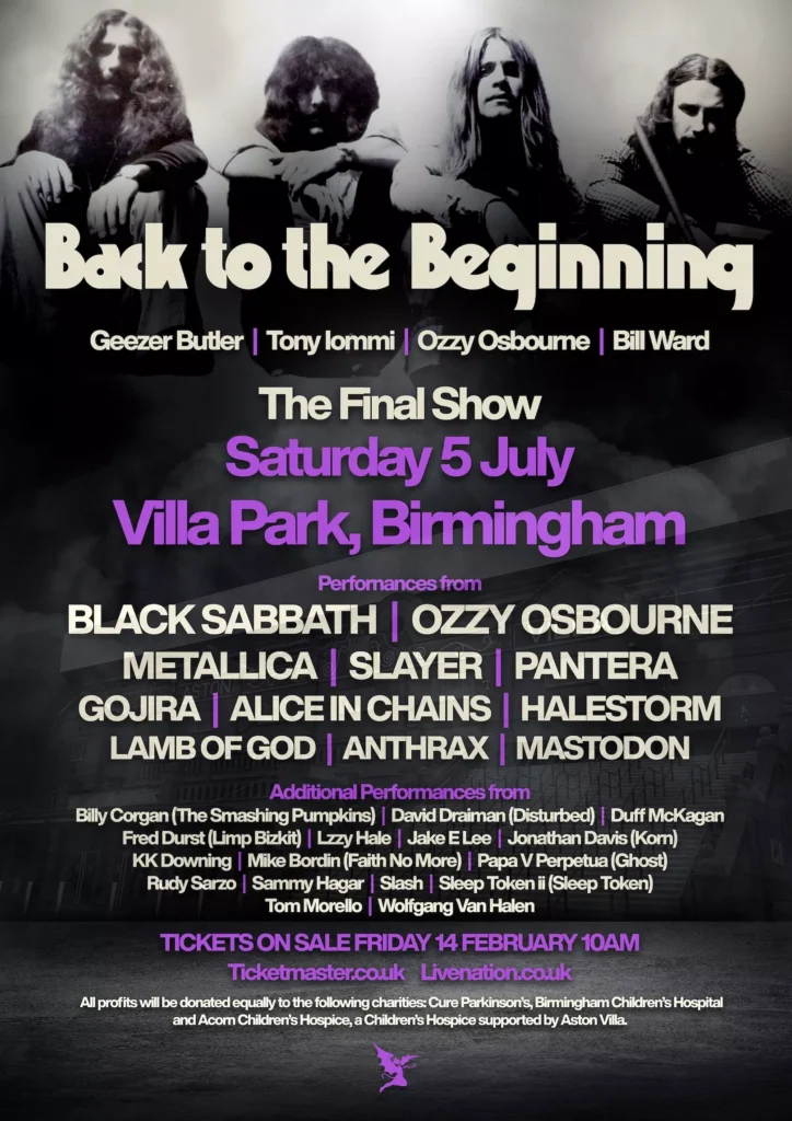 The original Black Sabbath lineup featuring Ozzy Osbourne, Tony Iommi, Geezer Butler and Bill Ward, have announced plans for one final show on July 5, 2025 at Villa Park in Birmingham, England.