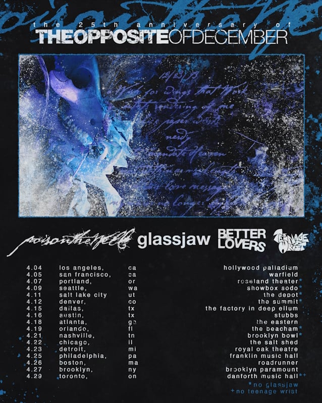 Celebrating their 1999 album “The Opposite Of December… A Season Of Separation”, Poison The Well has announced an April 2025 US/Canada tour. Support on the trek will come from Glassjaw, Better Lovers and Teenage Wrist.