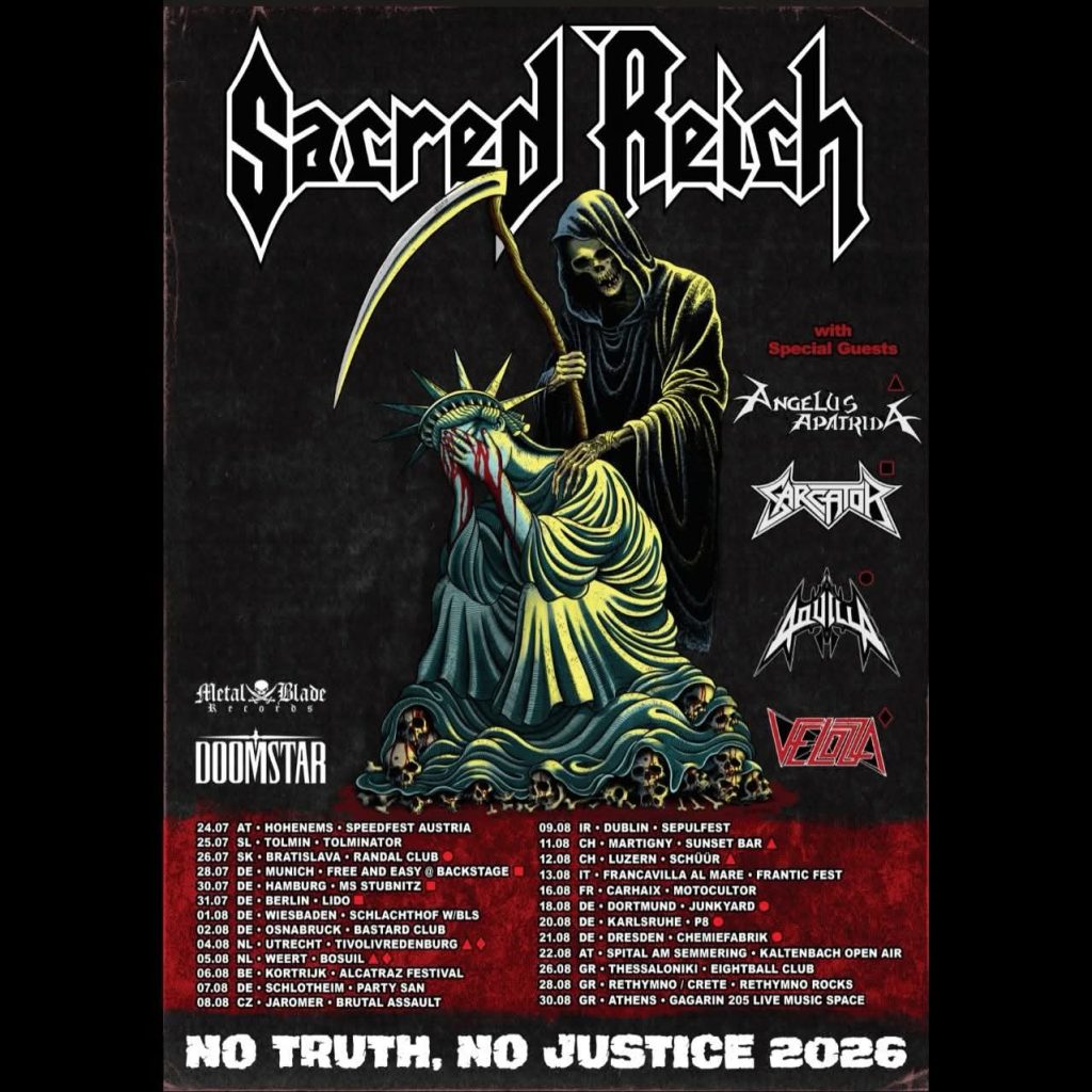 Sacred Reich have announced a European tour for the Summer. Support will come from Angelus Apatrida, Sarcator, Aguilla, and Velozza on select dates.