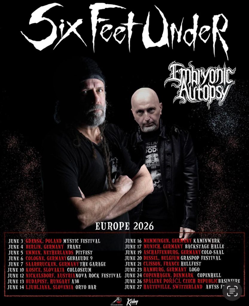 Six Feet Under have announced a European tour for the June. Support on select shows will come from Embryonic Autopsy.