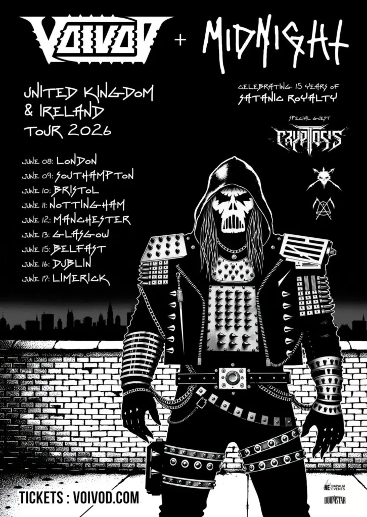 Voivod and Midnight have announced a UK/Ireland tour for June 2026. Support will come from Cryptosis.