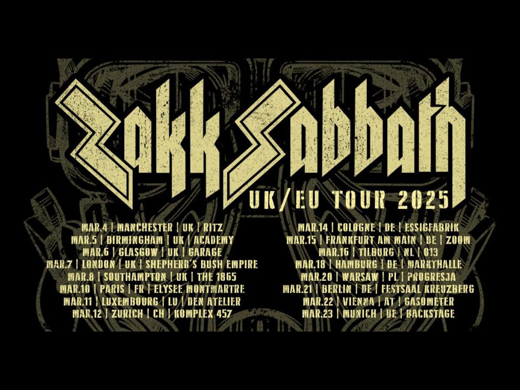 Zakk Sabbath, the BLACK SABBATH tribute with guitarist/vocalist Zakk Wylde (BLACK LABEL SOCIETY, OZZY OSBOURNE),bassist Robert “Blasko” Nicholson (OZZY OSBOURNE, ROB ZOMBIE) and drummer Joey Castillo (DANZIG, QUEEN OF THE STONE AGE),will tour Europe in 2025.