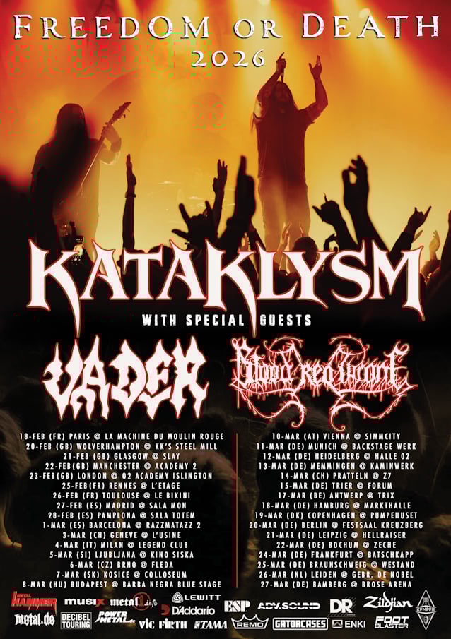 Kataklysm have announced a EU/UK tour for early 2026. Support will come from Vader and Blood Red Throne.