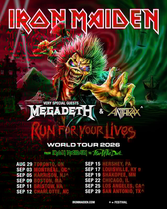 Iron Maiden have announced their “Run For Your Lives World Tour” North American tour. Support will come from Megadeth. Anthrax will also support on select dates.